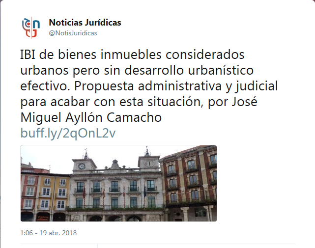 ¿afectado por IBI o PLUSVALÍA MUNICIPAL?Reciente y novedosa sentencia contencioso-administrativa sobre nulidad del Impuesto de Bienes Inmuebles (IBI), cuando grava bienes urbanos sin desarrollo urbanístico, que también es de aplicación a plusvalías municipales sobre esta misma clase de terrenos, donde ha sido abogado don José Miguel Ayllón Camacho, abogado máster.EN ESTOS ENLACES TODA LA INFORMACIÓN PARA DESCARGAR RESUMEN SOBRE LA SENTENCIA EN PDF» SENTENCIA DEL 27 DE ABRIL DE 2020 EN PDF» |
